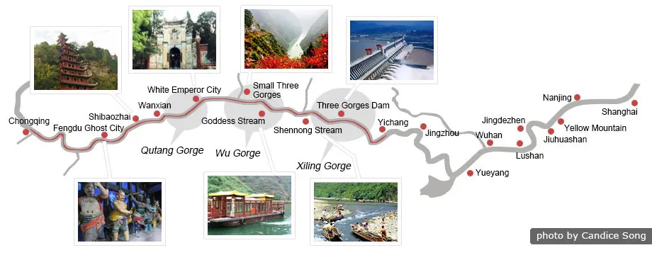 The most popular route for Yangtze River cruises is between Chongqing and Yichang, which is also one of the most beautiful sections of the Yangtze River. The downstream journey (Chongqing to Yichang) typically lasts 3 nights and 4 days, while the upstream journey (Yichang to Chongqing) usually lasts 4 nights and 5 days.